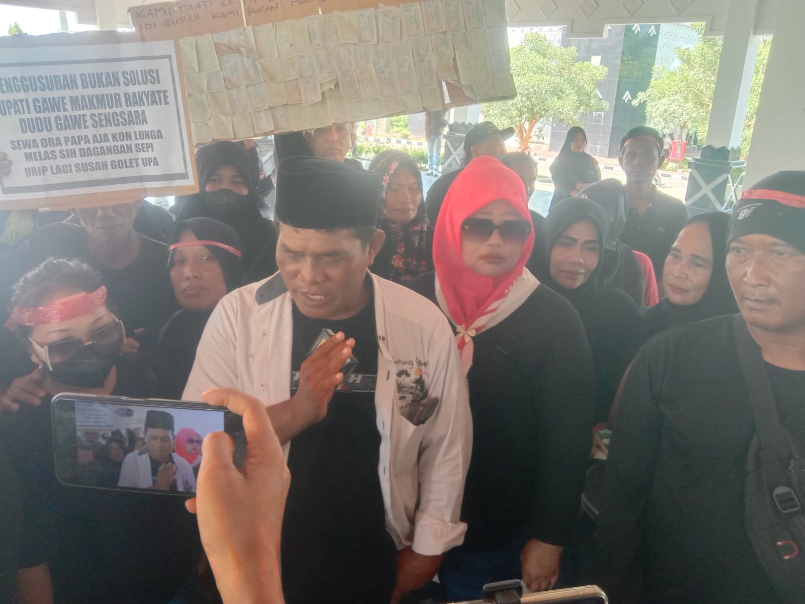 Puluhan para Pedagang yang mempunyai warung di lokasi sebelah kulon / barat Terminal Induk Pemalang Type A menggeruduk Kantor DPRD Pemalang Jalan Perintis Kemerdekaan .