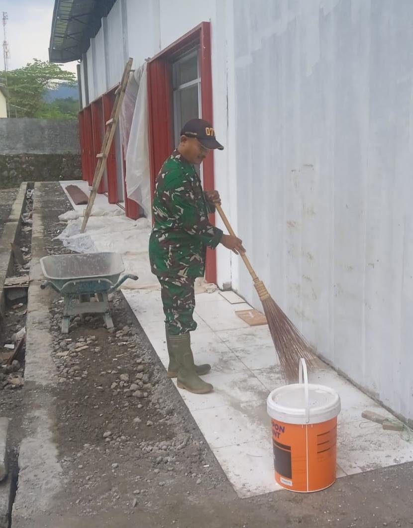 Kegiatan pemantauan ini dilakukan guna memastikan bahwa setiap tahapan pembangunan berjalan sesuai dengan perencanaan, baik dari segi kualitas maupun spesifikasi teknis yang telah ditentukan. Dengan kehadiran Babinsa di lapangan, diharapkan proses pembangunan dapat berlangsung dengan tertib, aman, serta menghasilkan bangunan yang kokoh dan bermanfaat bagi masyarakat.