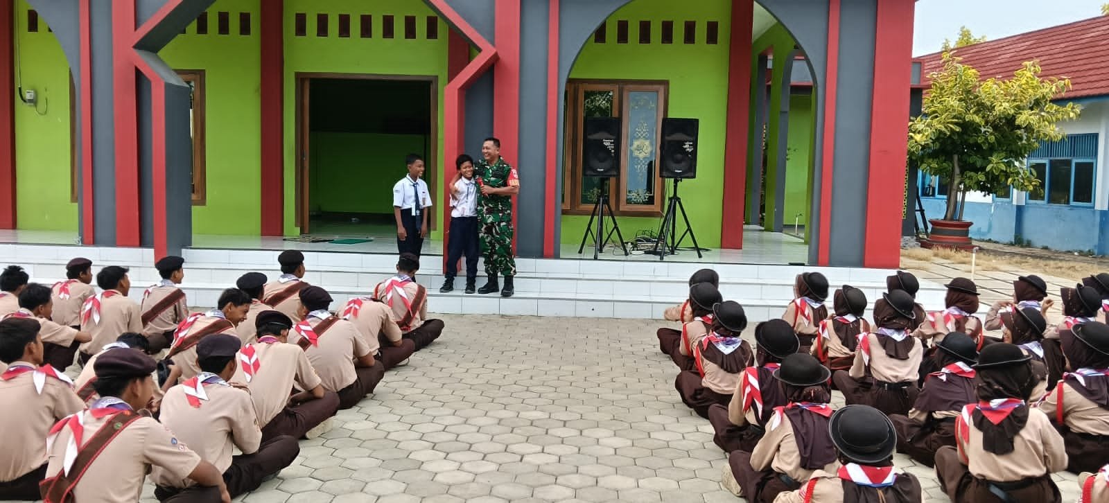 Sindonewsjateng.com, Pemalang – Dalam upaya menanamkan jiwa kepemimpinan dan membangun karakter generasi muda, anggota Koramil 02/Taman Kodim 0711/Pemalang memberikan materi wawasan kebangsaan kepada siswa-siswi SMPN 5 Taman, Rabu (05/11/2025).