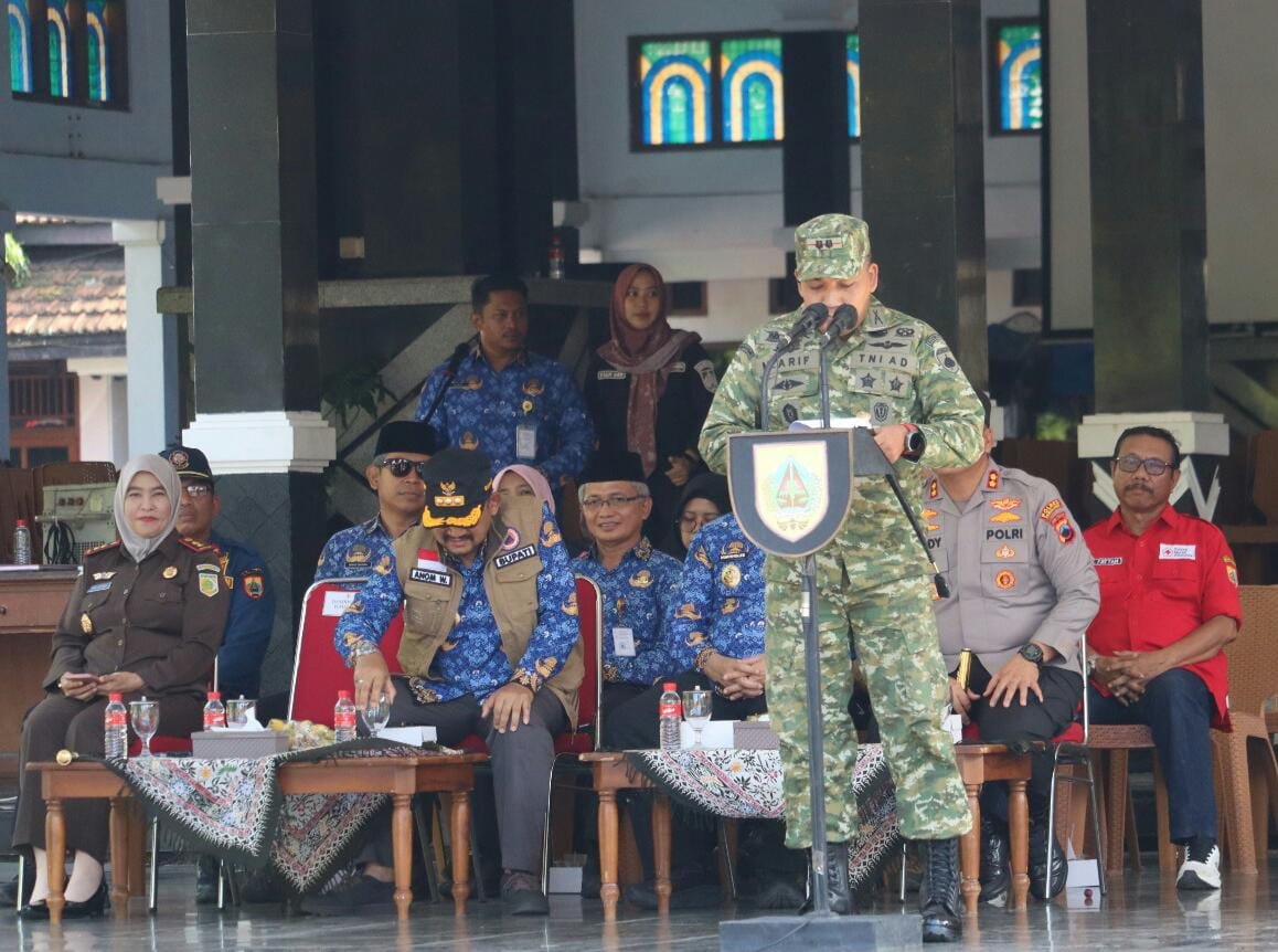 SINDONEWSjateng.com, Pemalang – Komandan Kodim (Dandim) 0711/Pemalang Muhammad Arif, S. Hub. Int., bersama Bupati Pemalang dan Kapolres Pemalang memimpin Apel Gelar Pasukan dan Peralatan Kesiapsiagaan Penanggulangan Bencana Tahun 2025, yang dilaksanakan di Halaman Pendopo Kabupaten Pemalang, Rabu (17/12/2025).