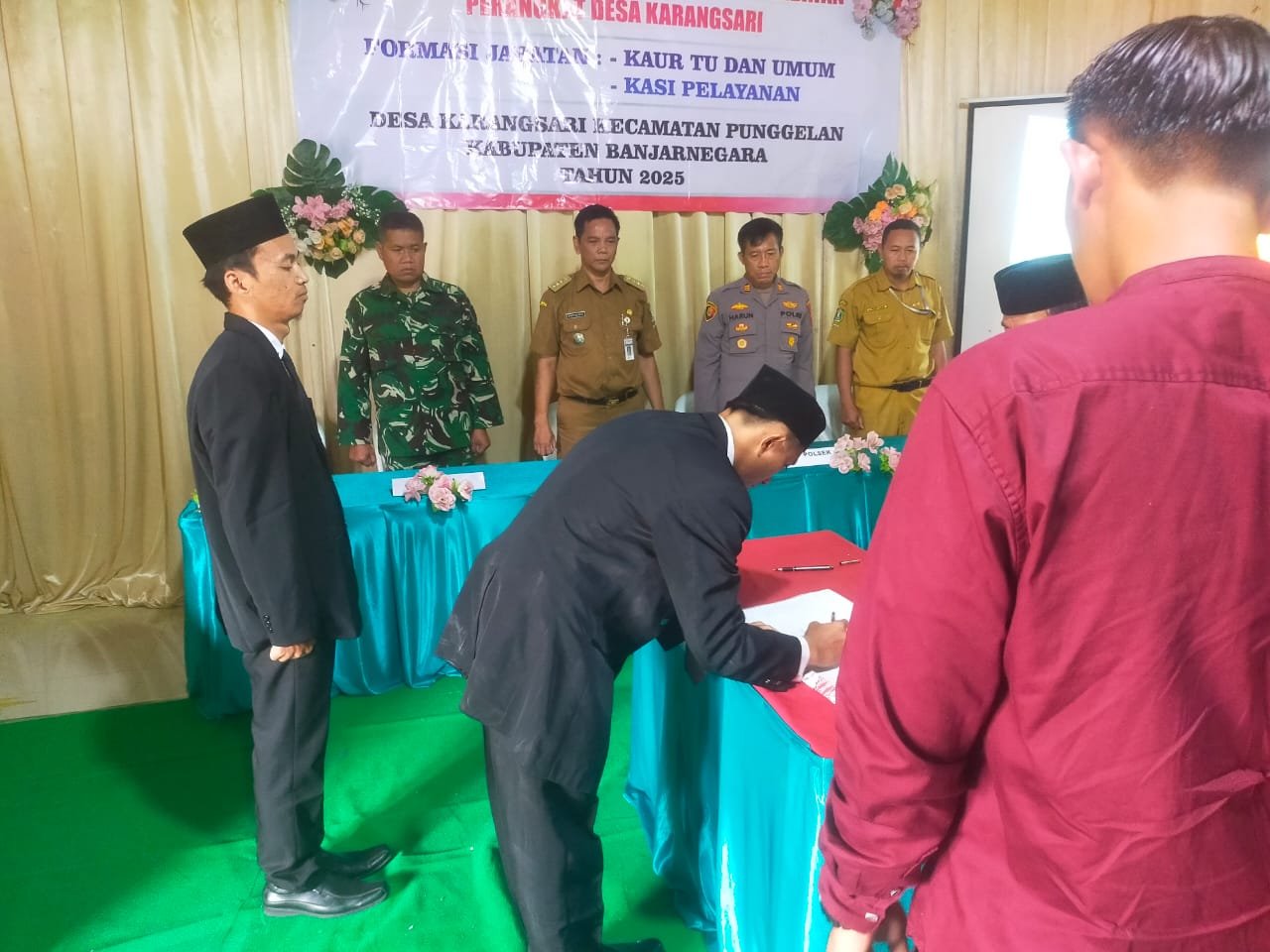 Dalam acara pelantikan dua perangkat tersebut di hadiri oleh Forkompicam Punggelan, Pemdes Karangsari, Ketua BPD, tokoh masyarakat dan keluarga terlantik.