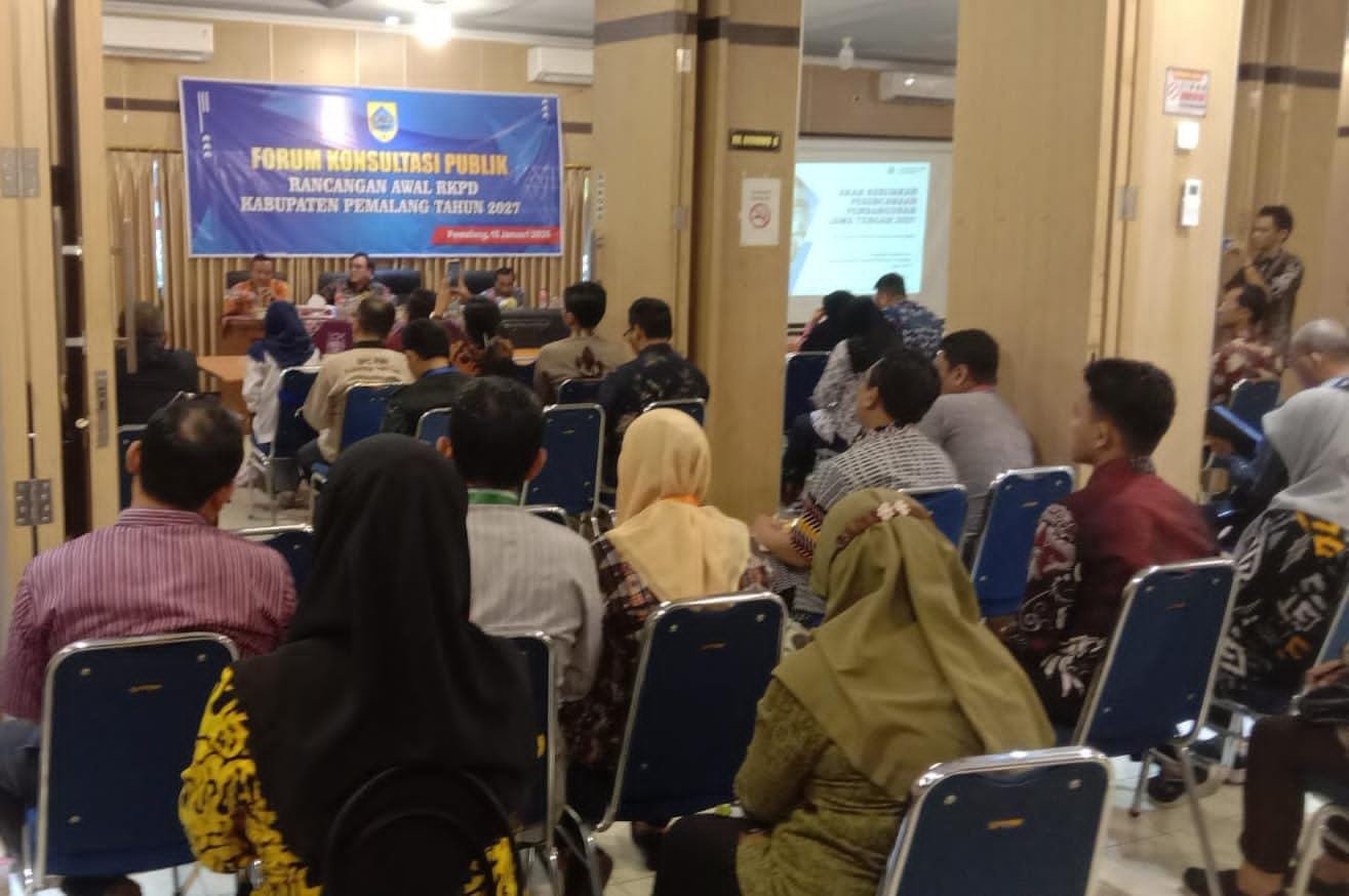 Kedatangan mereka untuk mengikuti acara Forum Konsultasi Publik Rancangan Awal RKPD Kabupaten Pemalang Tahun 2027 pada pukul : 09 : 00 WIB.