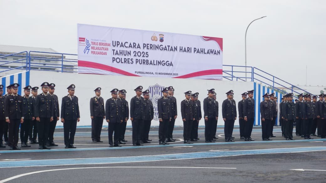 Sindonewsjateng.com, Purbalingga – Polres Purbalingga menggelar upacara peringatan Hari Pahlawan di halaman Satpas Purbalingga, Senin (10/11/2025). Upacara diikuti oleh pejabat utama polres, kapolsek, personel Polri dan pegawai negari sipil di lingkungan Polri.