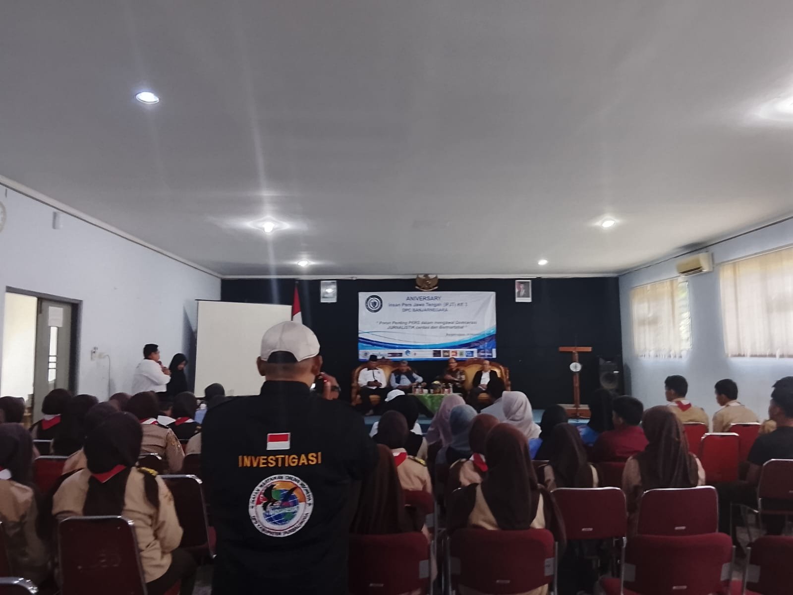 Kadis Kominfo Banjarnegara Setiyo, S.P, dalam sambutannya menegaskan bahwa jurnalis memiliki fungsi strategis dalam menyampaikan informasi yang benar kepada masyarakat. Ia menilai peran media juga sangat penting di lingkungan sekolah dan kampus untuk meningkatkan literasi digital para pelajar.