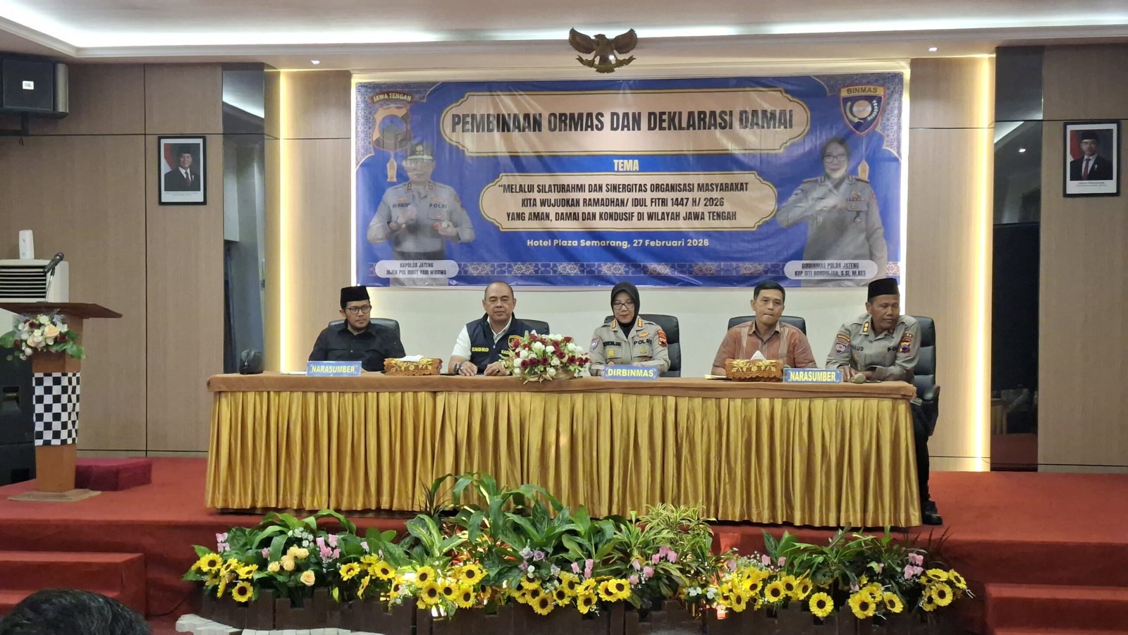 SINDONEWSjateng.com, Kota Semarang | Menjelang datangnya Bulan Suci Ramadhan 1447 H, Polda Jawa Tengah mengambil langkah preventif dengan merangkul para tokoh organisasi kemasyarakatan (ormas) se-Jawa Tengah dalam kegiatan Pembinaan Ormas dan Deklarasi Damai yang digelar di Hotel Plaza, Jl. Setiabudi, Srondol Kulon, Kota Semarang, Jumat (27/2/2026) sore.
