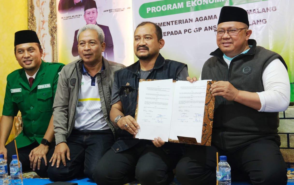 Penandatanganan MoU antara Bupati, Kemenag dan PC GP Ansor Pemalang dalam Program Pemberdayaan Ekonomi Umat dan penyerahan bantuan 100 ekor kambing dari Kemenag kepada PC GP Ansor, yang diserahkan oleh Kakanwil Kemenag Provinsi Jawa Tengah serta bantuan secara simbolis oleh Bupati kepada PC GP Ansor.
