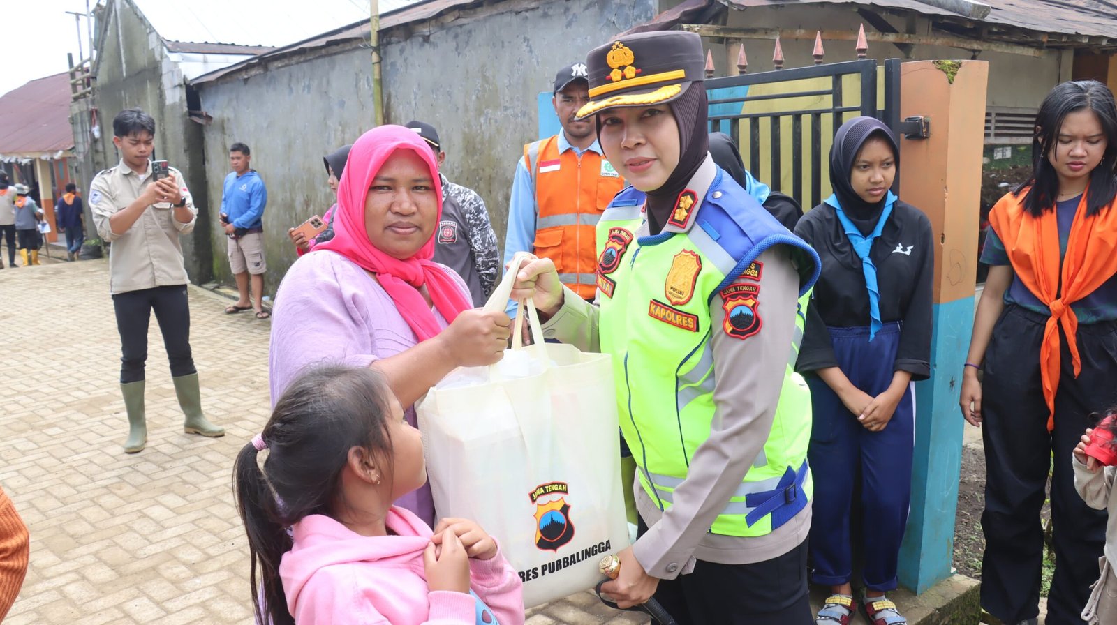 Dipimpin oleh Kapolres Purbalingga AKBP Anita Indah Setyaningrum, bantuan diserahkan untuk warga di dua lokasi pengungsian yaitu di Dusun Gunung Malang dan Villa Sambas, Desa Serang Kecamatan Karangreja, Kabupaten PurbaIingga.