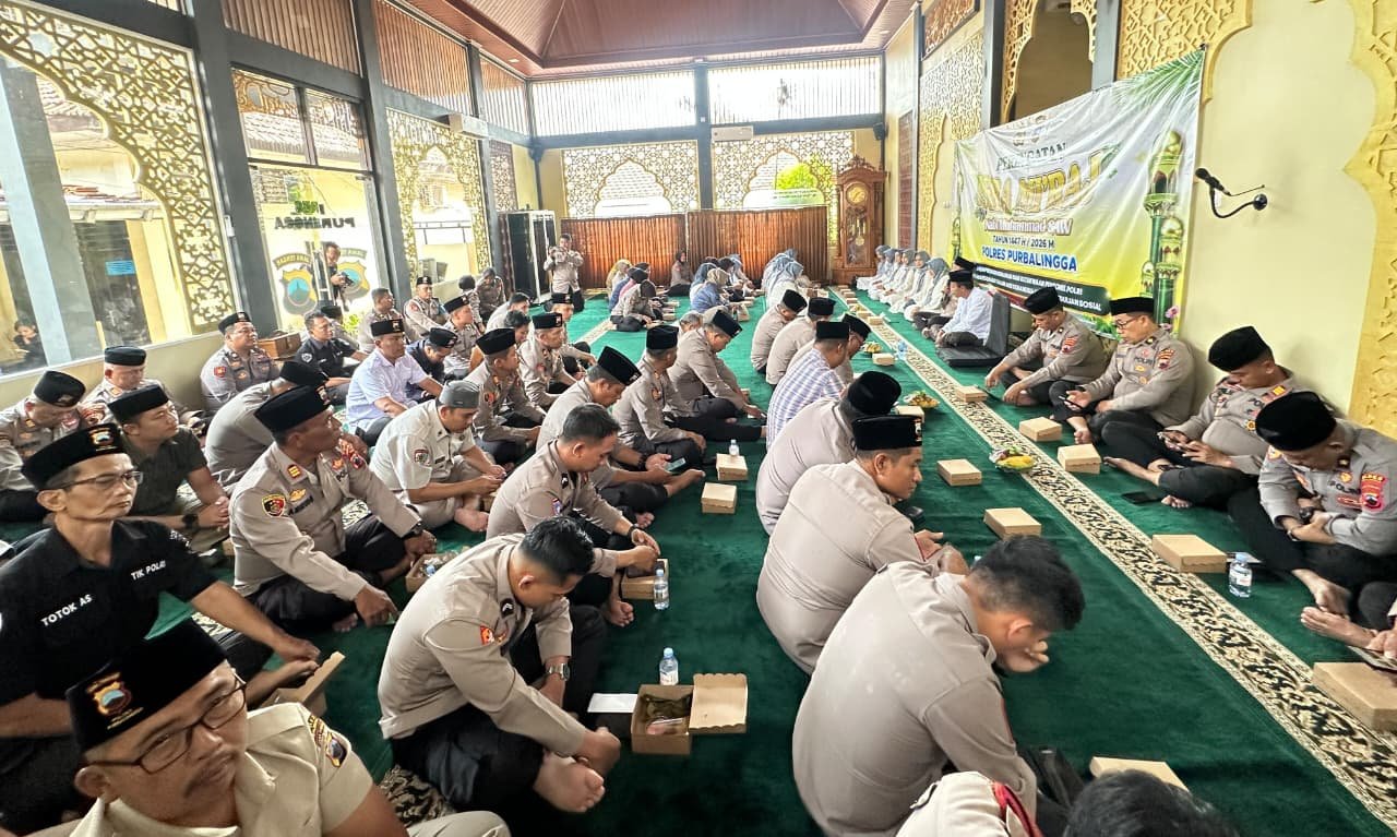 SINDONEWSjateng.com, Purbalingga – Polres Purbalingga menggelar peringatan Isra Mi’raj Nabi Muhammad SAW 1447 H/2026 M di Masjid Ar-Rabbani, Jumat (23/1/2026). Kegiatan ini mengusung tema “Memperteguh Keimanan dan Ketakwaan Personel Polri untuk Masyarakat dalam Aksi Kemanusiaan dan Kepedulian Sosial”.
