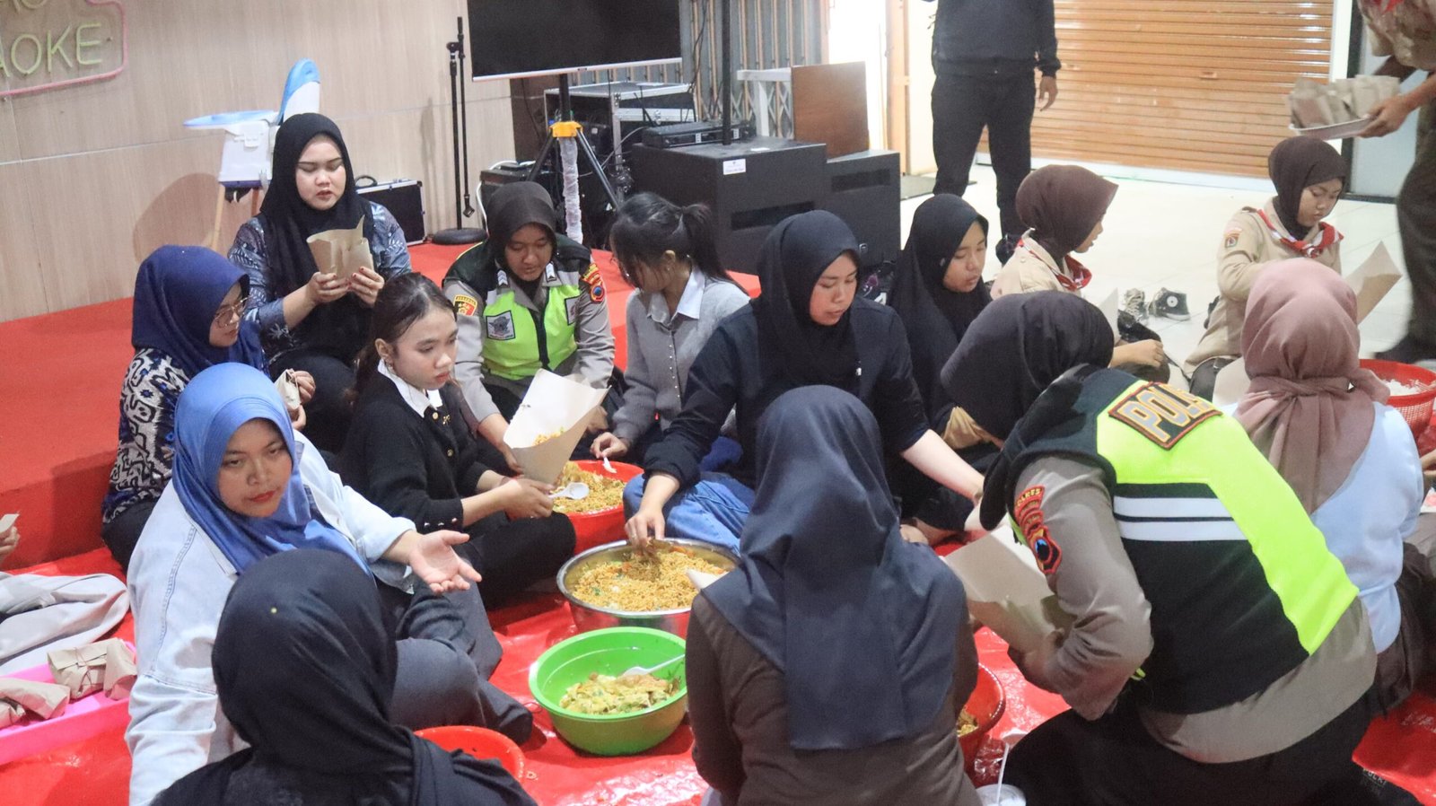 Mereka bergabung dengan petugas dapur umum, relawan dan pramuka untuk menyiapkan ribuan porsi makanan bagi warga terdampak bencana, petugas, dan relawan.