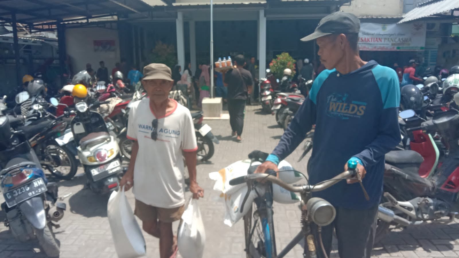 Yang pada saat ini berkumpul memadati halaman Kantor Kelurahan tersebut untuk menerima beras dan minyak dalam program pemerintah pusat turun ke Pemerintah provinsi dan hingga sampai ke Pemerintah Desa , Kelurahan dari tiap wilayah yang ada di Negara Kesatuan Republik Indonesia ( NKRI ) yakni ‘ Program Ketahanan Pangan Nasional 2025 ‘ .