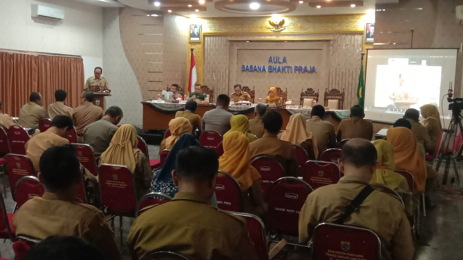 Setelah prosesi ceremonial selesai dilanjutkan kata pengantar rapat koordinasi dari H.Heriyanto Sekda Pemalang ,