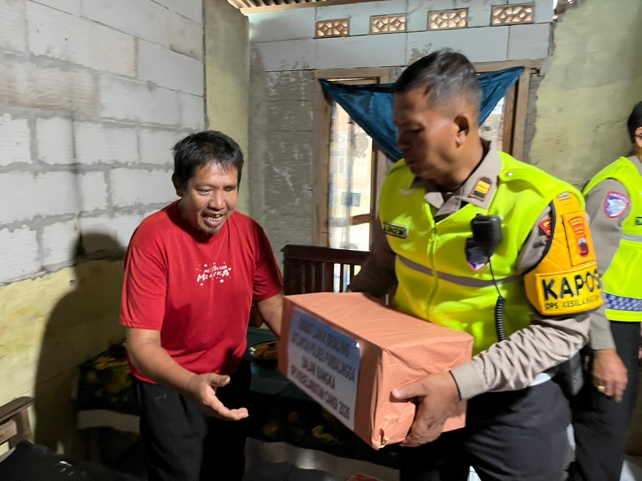 Dalam kegiatan personel dari Satlantas mengunjungi rumah Supono (48), warga Desa Candinata, Kecamatan Kutasari, Kabupaten Purbalingga. Supono merupakan korban kecelakaan pada Agustus 2025, hingga mengalami cacat permanen.