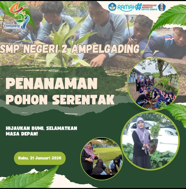 Dirinya menjelaskan ” kami dari segenap guru dan ratusan siswa- siswi didik kami pada hari ini Rabu 21 Januari 2026 melaksanakan penanaman pohon masih dalam rentetan kegiatan memperingati Hari Jadi Kabupaten Pemalang ke 451 Tahun ” kata Junaedi .