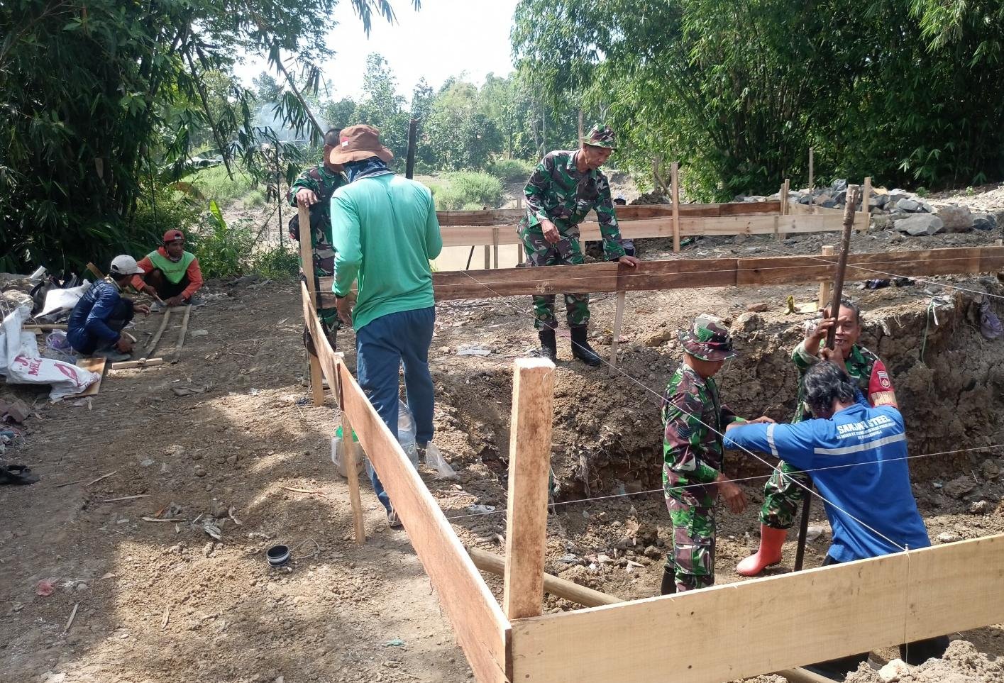 Proses pembangunan dilakukan secara gotong royong dengan melibatkan prajurit TNI AD dan masyarakat setempat. Mulai dari pengangkutan material hingga pengerjaan konstruksi, seluruh pihak terlibat aktif dalam suasana kebersamaan.