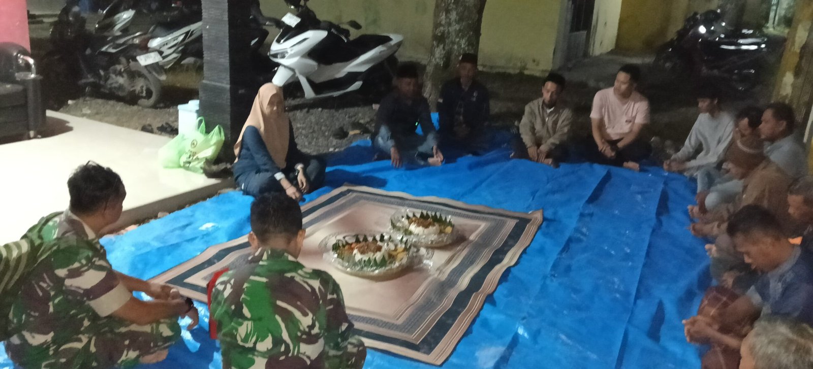 Danramil 02/Taman Kodim 0711/Pemalang, Kapten Cke Mahmudin, menghadiri acara tasyakuran awal pembangunan Koperasi Desa/Kelurahan Merah Putih (KDKMP) di Desa Jebed Utara, Kecamatan Taman, Kabupaten Pemalang, Jawa Tengah, pada Jumat malam tanggal 10 April 2026.