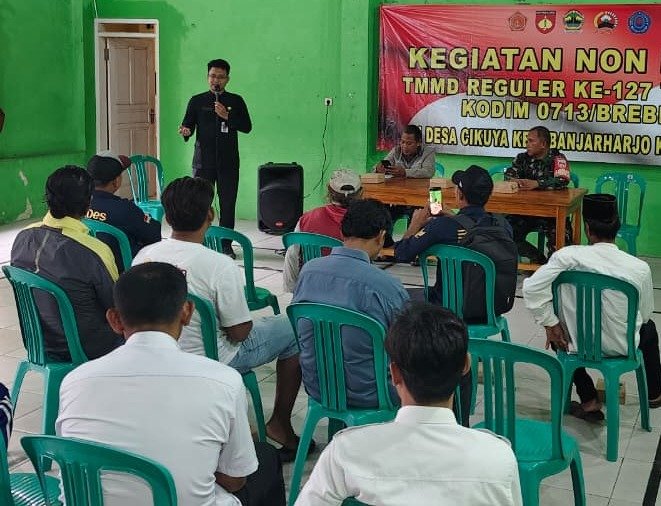 SINDONEWSjateng.com, BREBES – Upaya menyejahterakan peternak menjadi salah satu fokus sasaran non-fisik dalam program TNI Manunggal Membangun Desa (TMMD) Reguler ke-127 Kodim 0713/Brebes. Bertempat di Balai Desa Cikuya, Kecamatan Banjarharjo, Kabupaten Brebes, dilaksanakan sosialisasi dan pelatihan pembuatan suplemen pakan ternak berkualitas pada Kamis (19/02/2026).