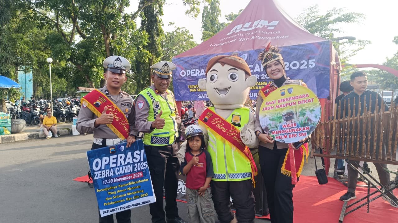 Sindonewsjateng.com, Purbalingga – Polres Purbalingga punya cara unik dalam sosialisasi tertib lalu lintas dalam rangka Operasi Zebra Candi 2025. Mengambil tema Art Policing dihadirkan wayang, badut dan musik tradisional kenthongan di Stadion Goentoer Darjono Purbalingga, Minggu (23/11/2025).